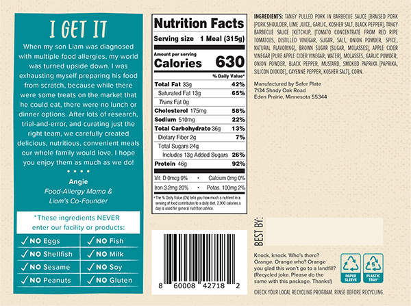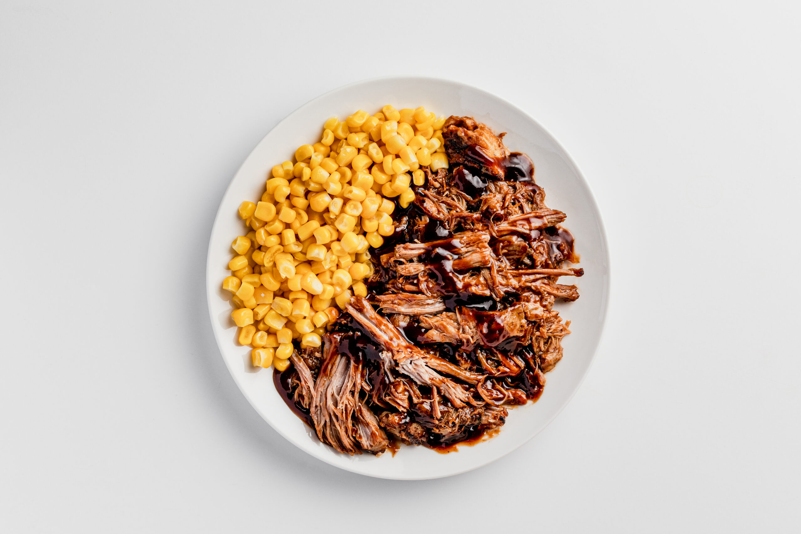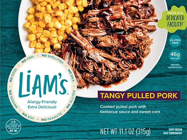 Cooked pulled pork with barbeque sauce and sweet corn. Free of the top allergens but full of flavor!